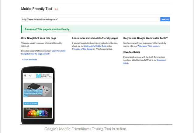 شما می توانید بررسی کنید آیا سایت شما در حال حاضر پیش نیازهای لازم برای Mobile friendly شدن را دارد یا خیر، با چک کردن برای یک برچسب “Mobile friendly”. اگر شما چک کردن صفحه به صفحه را ترجیح می دهید، ابزار تست “Mobile friendly” را استفاده کنید که می تواند نتایج زنده ی جستجوی گوگل را مطابقت بدهد.