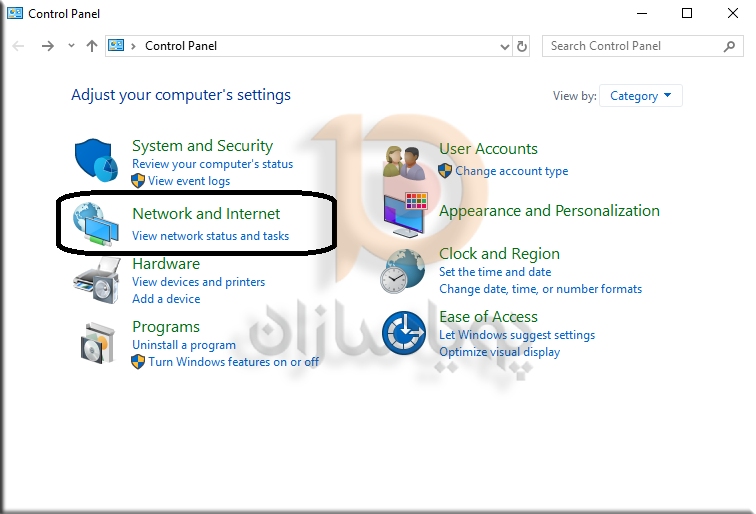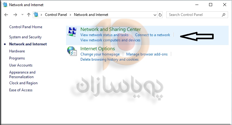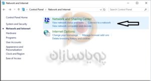 2. در مرحله بعد Network and Sharing Centerرا انتخاب کنید