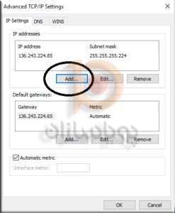 6. همانطور که در این صفحه مشاهده می کنید لیست ای پی های سرور را به شما نشان می دهد و با کلیک بر روی دکمه Add می توانید ای پی جدید خود را اضافه کنید
