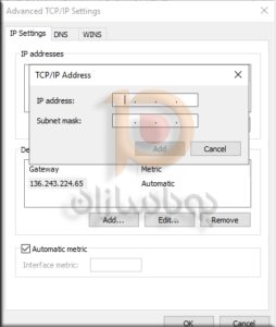 7. در نهایت در پنجره باز شده آی پی اضافه را به همراه subnet وارد نمایید و دکمه Add را کلیک کنید.