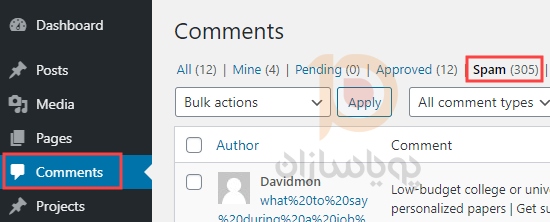 اگر نمی خواهید نظرات در انتظار را حذف کنید و فقط تمایل به حذف نظرات اسپم دارید این کار به سادگی در ورد پرس انجام خواهد شد برای این منظور کافی است به پیشخوان وردپرس خود لاگین نمایید و از بخش comment برروی تب Spam کلیک کنید .