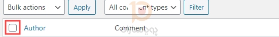 حالا که در هر صفحه 100 نظر را مشاهده می کنید با تیک زدن چک باکس کنار Author در سمت چپ صفحه می توانید تمام نظرات را انتخاب کنید.