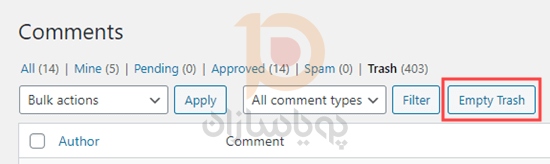اگر ترجیح می دهید بلافاصله آنها را به طور دائمی حذف کنید ، باید به برگه ” Trash ” در صفحه ” Comments ” بروید و سپس روی دکمه ” Empty Trash” کلیک کنید.