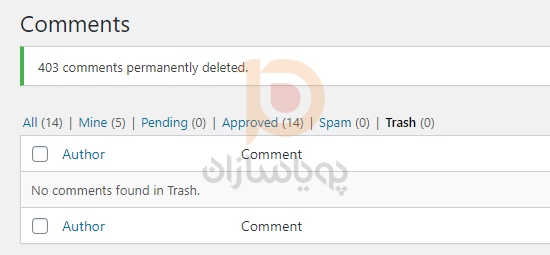 سپس پیامی را مشاهده خواهید کرد که تأیید می کند همه نظرات در انتظار و هرزنامه حذف شده اند.