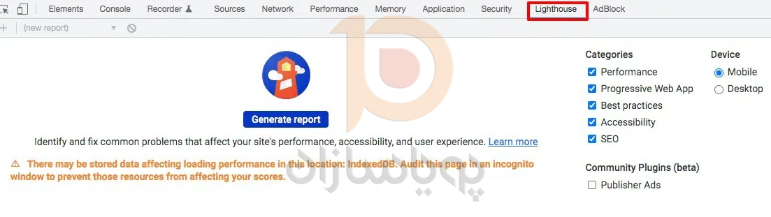 Chrome DevTools مجموعه ای از ابزارهای توسعه دهنده وب است که مستقیماً در مرورگر Google Chrome ساخته شده است. با ابزار توسعه کروم، می توانید موارد حیاتی وب سایت خود را در یک محیط آزمایشگاهی اندازه گیری کنید. برای دسترسی به Chrome DevTools در هر نقطه از وب سایت خود کلیک راست کرده و سپس بر روی گزینه inspect کلیک کنید. سپس به برگه lighthouse بروید، جایی که می توانید LCP و CLS وب سایت را اندازه گیری کنید.