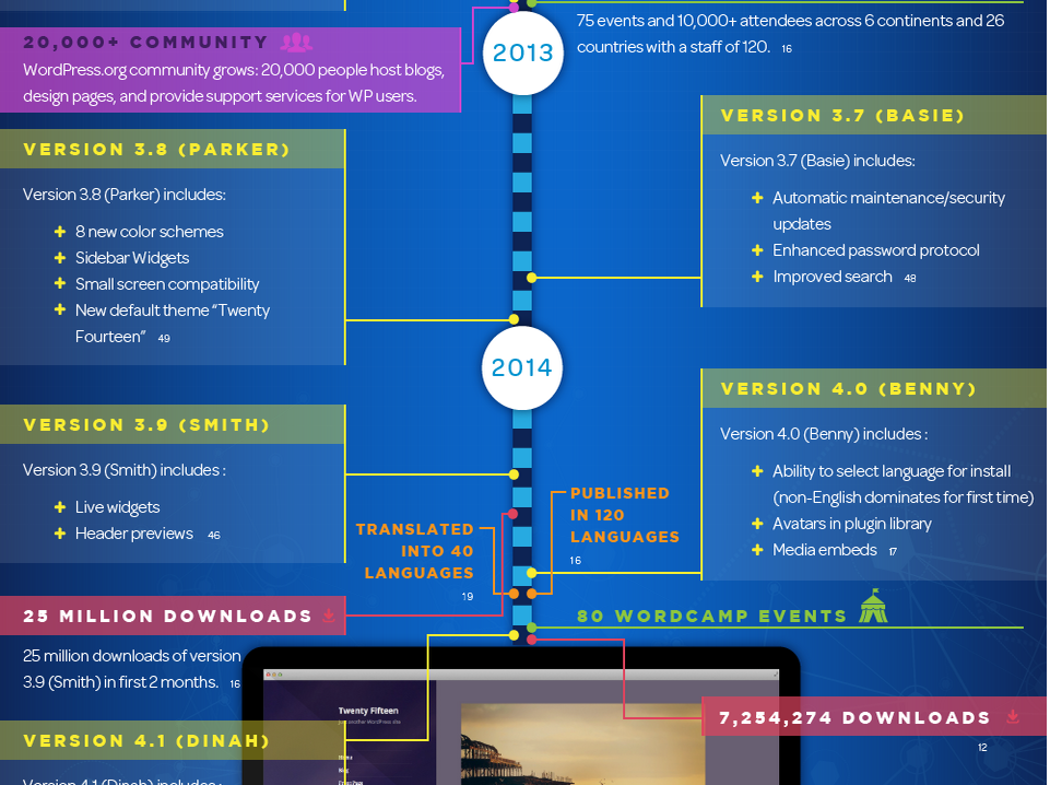 از سال 2003 تا به حال، وردپرس از یک پلت فرم open source به معروف ترین سیستم مدیریت محتوای وب با بیش از 70 میلیون وب سایت تبدیل شده است. این تحول در طول این مدت کوتاه شگفت آور است.