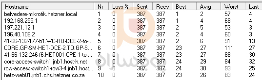 دستور winmtr hostname را اجرا کنید بجای hostname نام هاست خود را وارد نمایید.