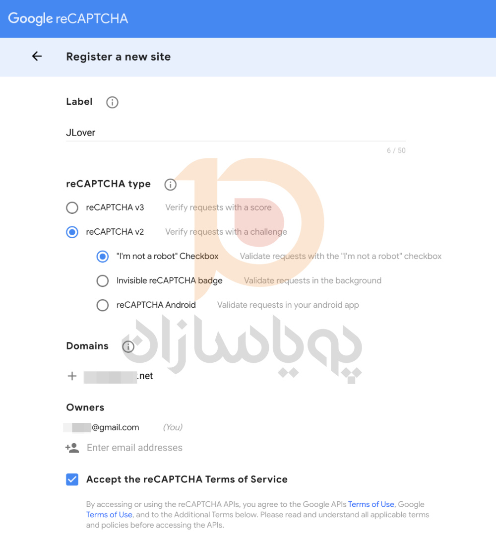 دریافت کلیدهای API reCAPTCHA: