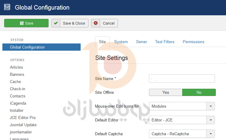 به مسیر System > Global Configuration > Site Settings بروید .