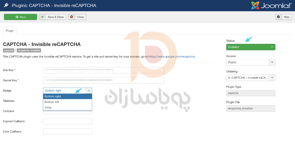اگر می خواهید از reCAPTCHA در وب سایت جوملا خود استفاده کنید ، باید تنظیمات زیر را پیکربندی کنید. در اینجا ، ما تنظیمات مربوط به Site Key و Secret Key منحصر به فرد خود را پیکربندی خواهیم کرد.