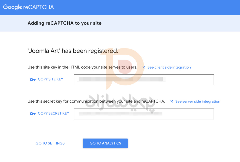 شما به دو اطلاعات از سایت Google reCAPTCHA نیاز دارید:
