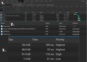 همانطور که مشاهده می کنید ، فایل Home.php دارای بالاترین اولویت است ، سپس CSS (که در حافظه پنهان است) ، سپس JS بارگذاری می شود. اولویت با نظمی که بارگیری شده مطابقت دارد.