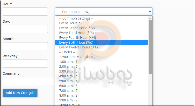 4. گزینه هر 6 ساعت را از منوی کشویی انتخاب کنید.