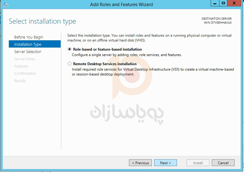 گزینه Role-based or Feature-based Installation را انتخاب نمایید.