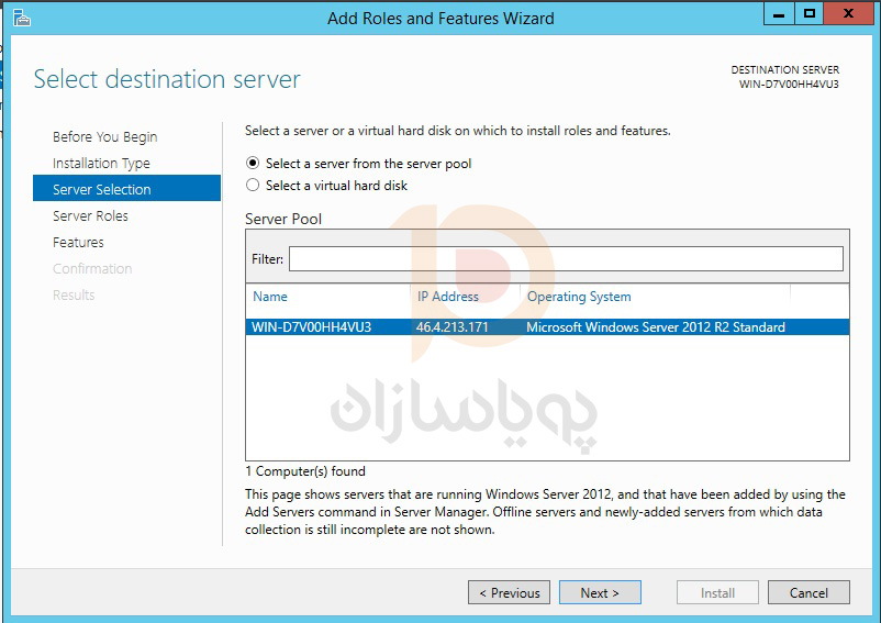 گزینه select a server from the server pool را انتخاب نمایید.
