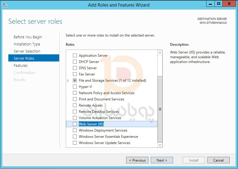 گزینه Web Server (IIS) انتخاب شود.