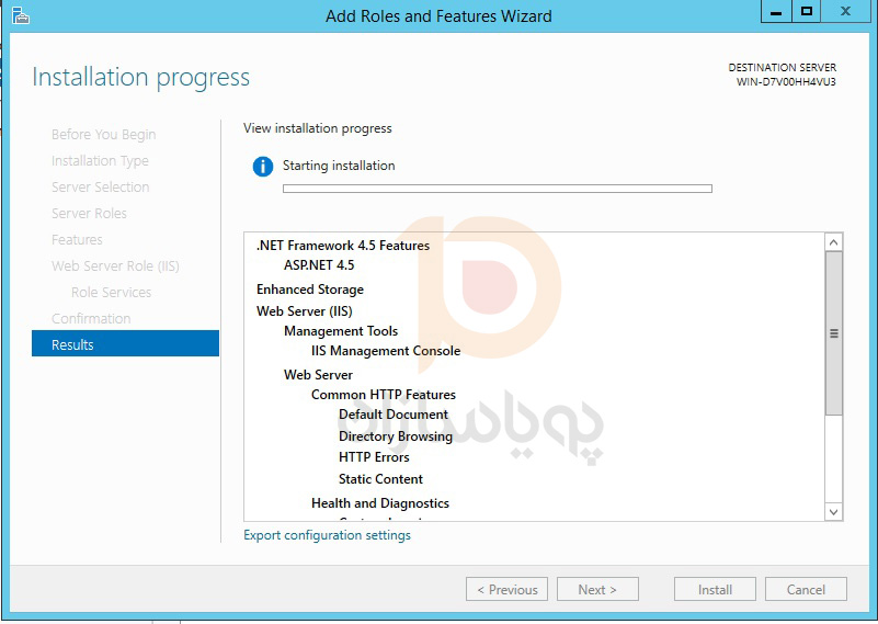 IIS 8.0 با استفاده از Server Manager در Windows Server 2012 با موفقیت نصب شده است.