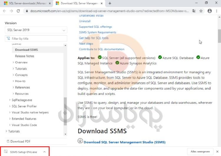 اکنون SQL Server Management Studio شروع به دانلود می کند.