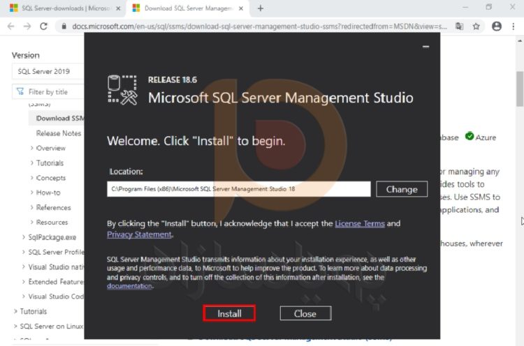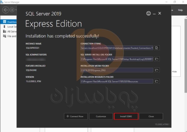 پس از اتمام نصب، روی Install SSMS کلیک کنید.