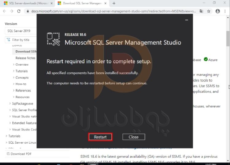 SQL Server Management Studio شروع به دانلود می کند. وقتی کار تمام شد روی آن کلیک کنید تا اجرا شود.