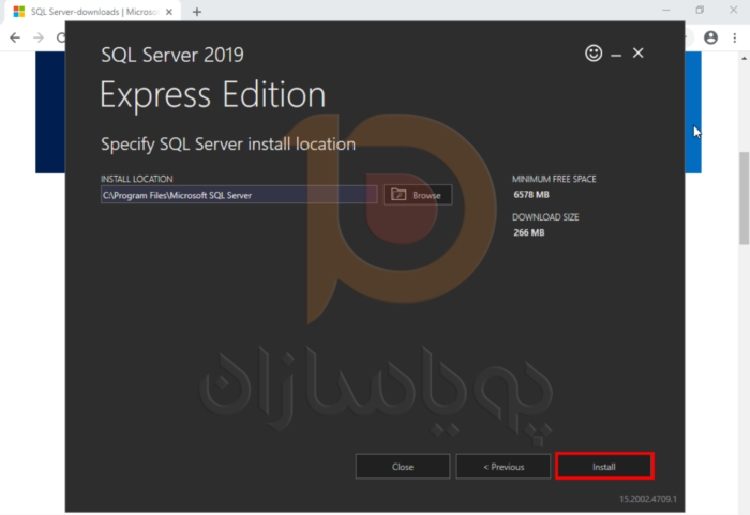 محل نصب MSSQL را انتخاب کنید. سپس روی Install کلیک کنید.