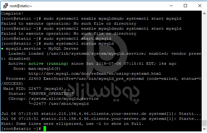 پس از تکمیل نصب، سرویس mysql را ری استارت نمایید و همینطور استارت خودکار با boot را فعال نمایید.
