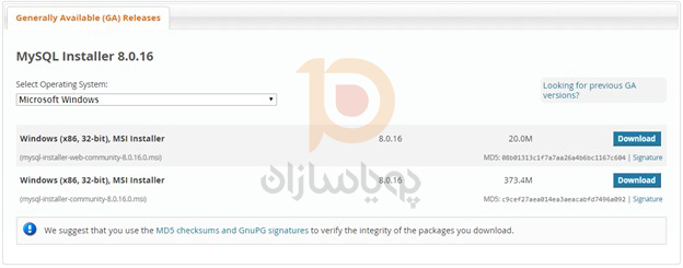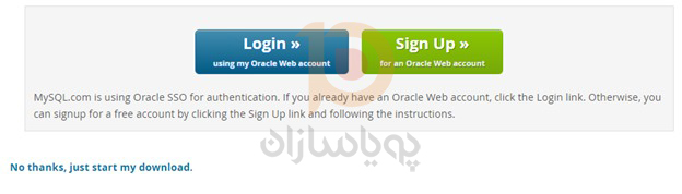 MySQL Installer را از سایت dev.mysql.com دانلود کنید. دو گزینه دانلود عبارتند از یک نسخه وب سایت و یک نسخه کامل. نسخه وب سایت فقط سرور را به طور پیش فرض دانلود می کند، اما شما می توانید سایر برنامه ها (مانند Workbench) را به صورت دلخواه انتخاب کنید. نصب نسخه کامل شامل سرور و تمامی برنامه های توصیه شده است(برای این مورد، نیاز است یک حساب کاربری ایجاد کنید اگر تنها می خواهید دانلودکنید بر روی No thanks, just start my download. کلیک کنید. )