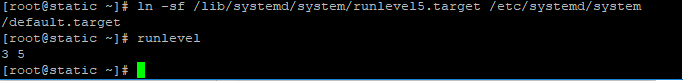 # ln -sf /lib/systemd/system/runlevel5.target /etc/systemd/system/default.target