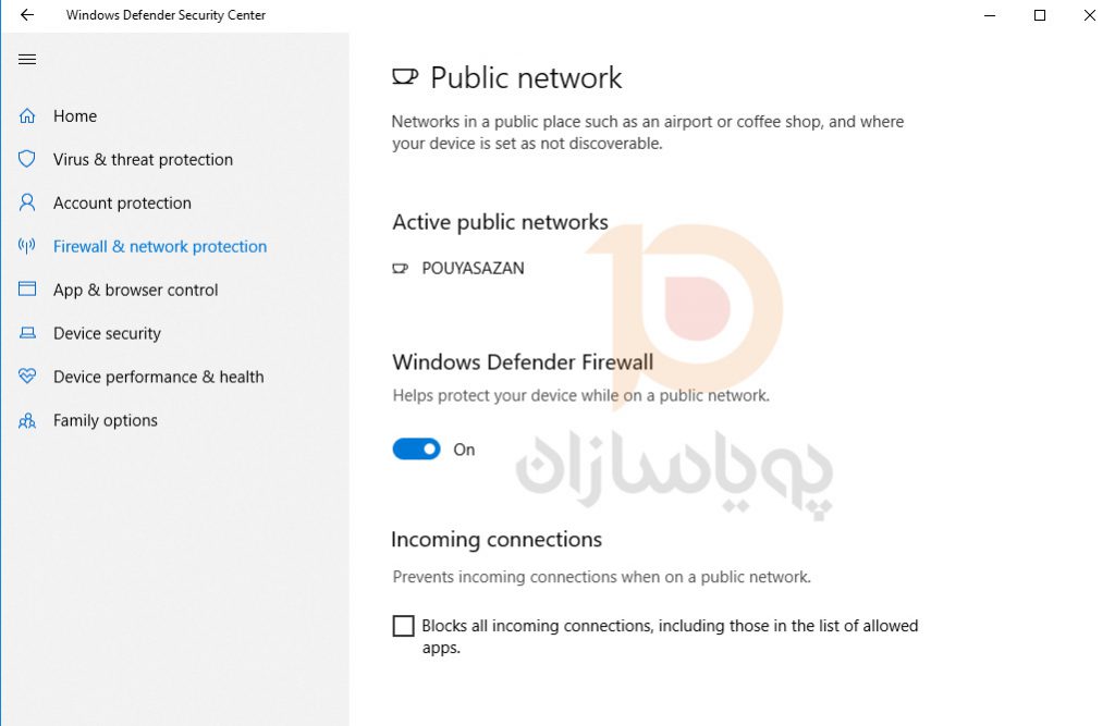 گزینه ی Firewall and network protection را انتخاب نمایید.