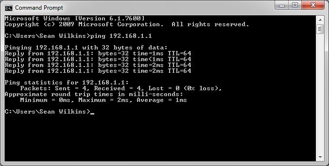 شکل 1 نمونه ای از ابزار پینگ جهت بررسی وضعیت روتر محلی