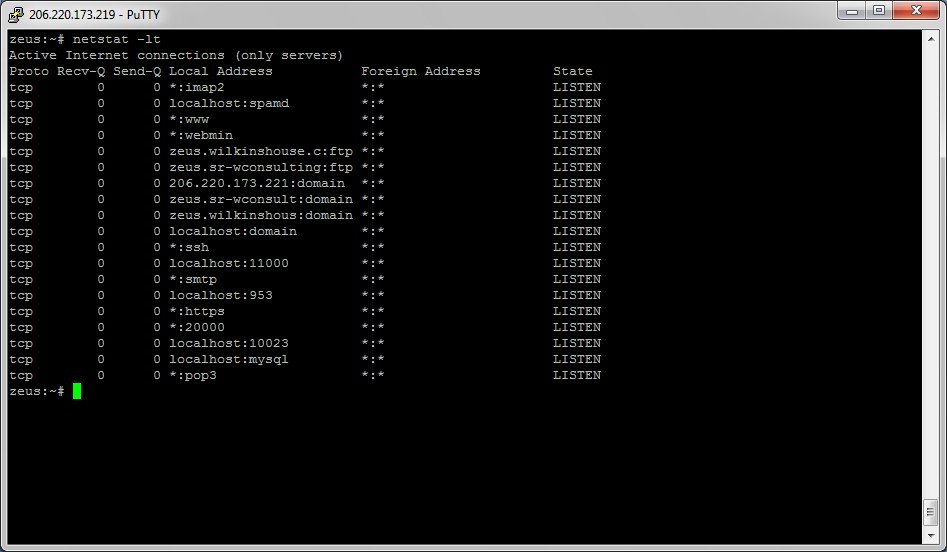 شکل 5 نمونه ای از ابزار netstat را که برای نمایش درگاه های فعال در حال استفاده بر روی دستگاه لینوکس استفاده می شود ، نشان می دهد.