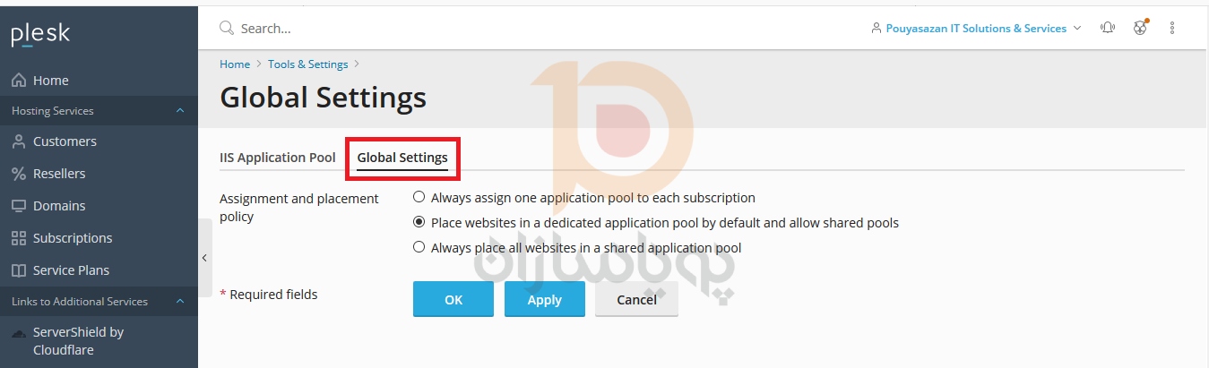 به طور پیش فرض ، Plesk یک Iis Application pool مشترک برای همه کاربران ارائه می دهد. اما ، شرکت های ارائه دهنده خدمات میزبانی وب می تواند به هری ک از کارابران خود Iis Application pool اختصاصی ان کاربر را اختصاص دهند.