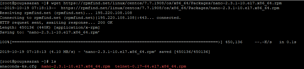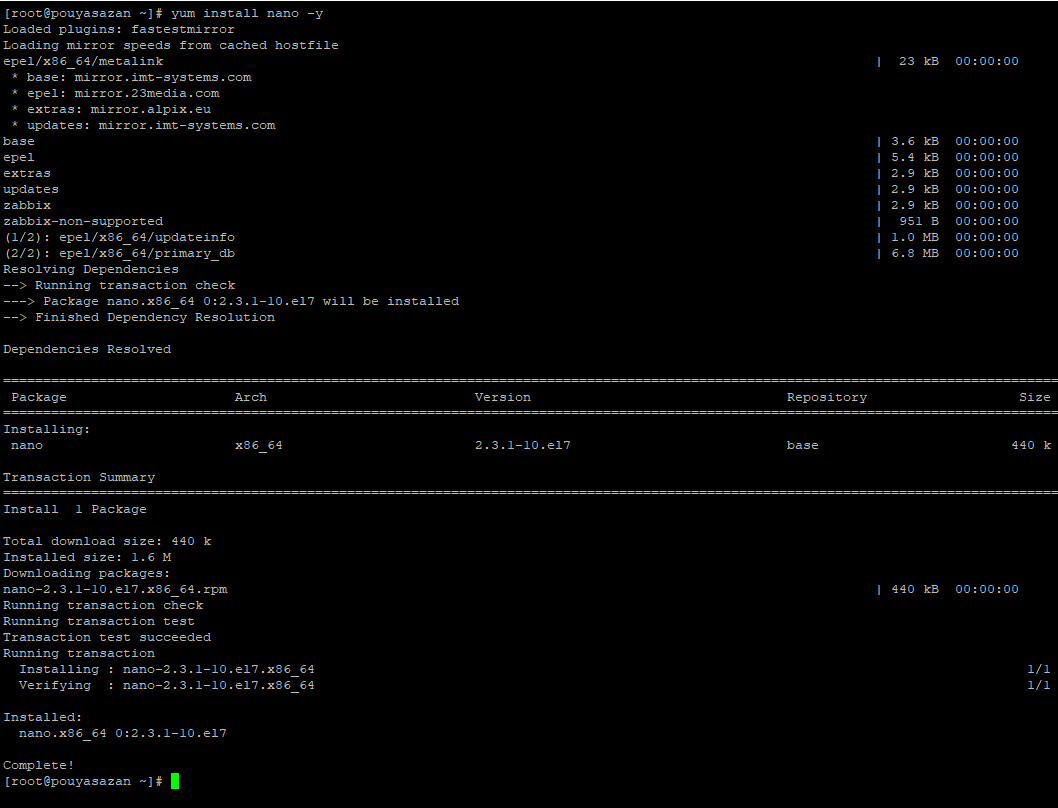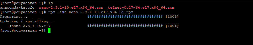 [root@pouyasazan ~]# rpm -ivh nano-2.3.1-10.el7.x86_64.rpm