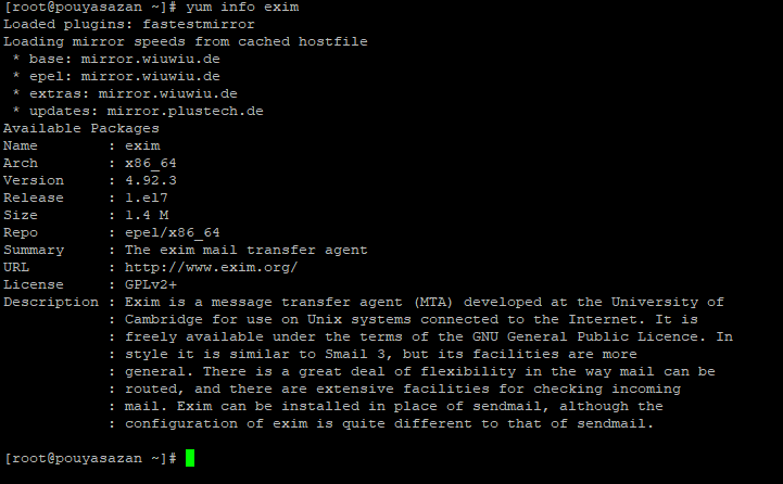 yum info exim