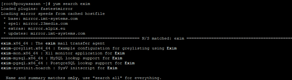 yum search exim